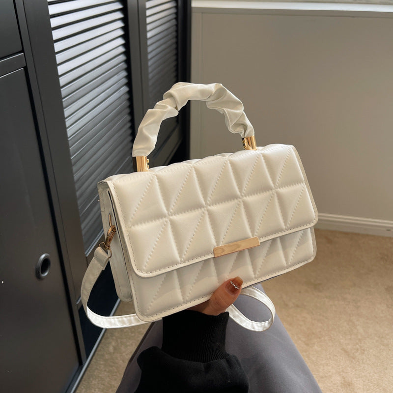 A refined handbag designed to add texture and elegance to everyday styling. This pleated handbag features a diamond-inspired texture that creates visual depth and a polished, fashion-forward look.